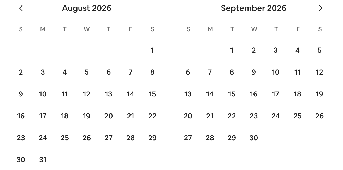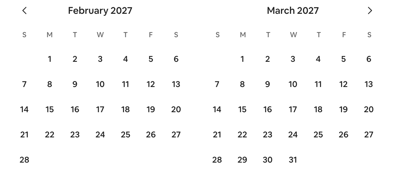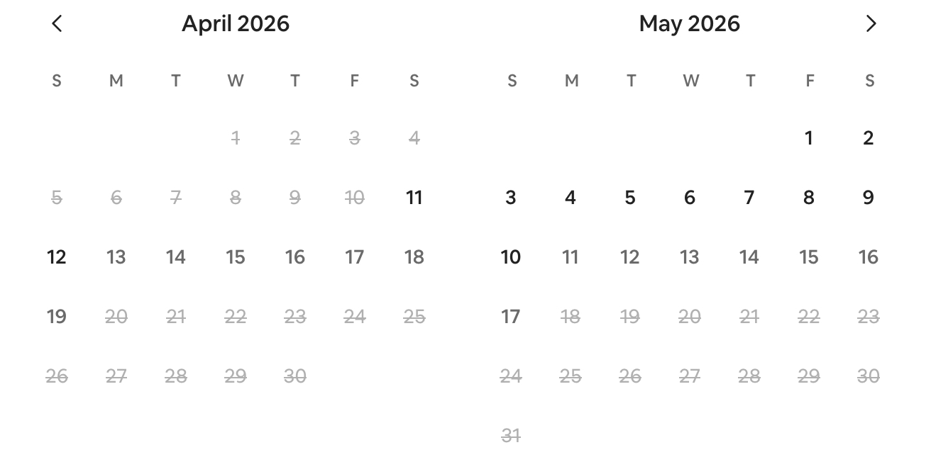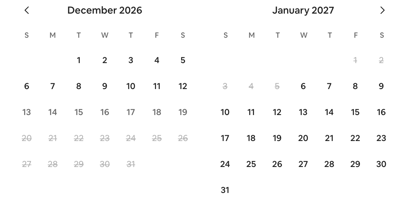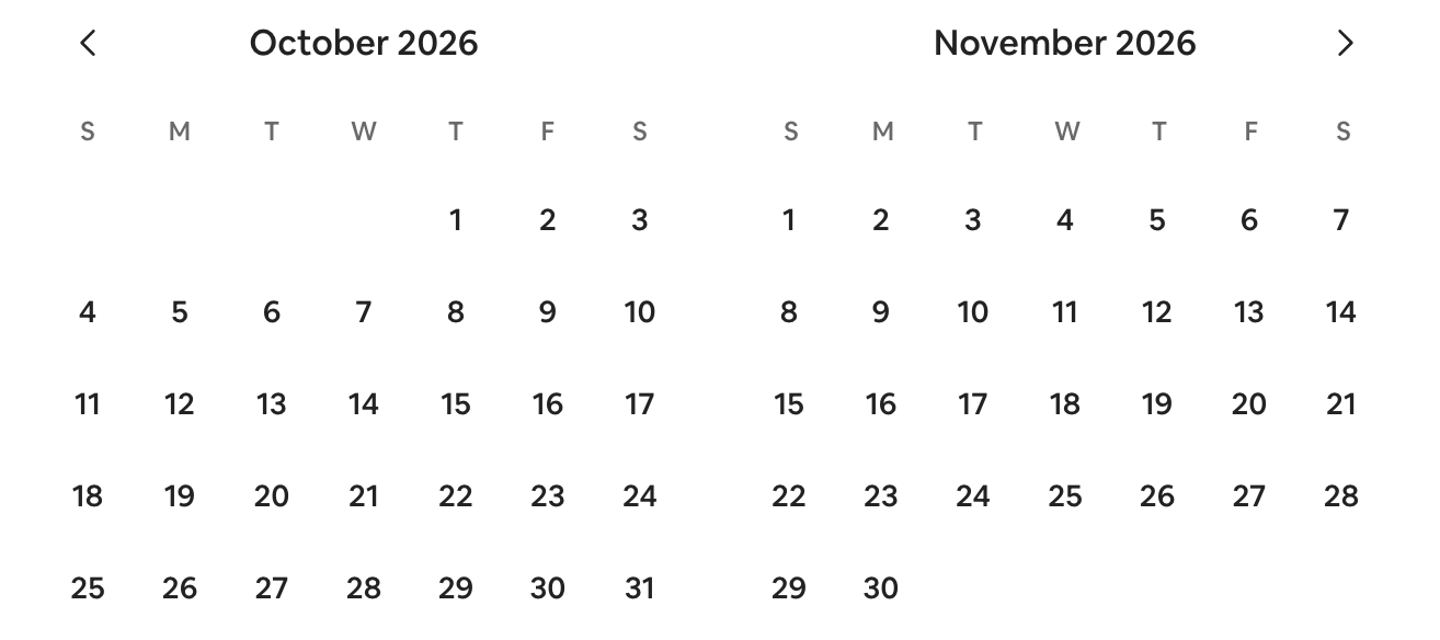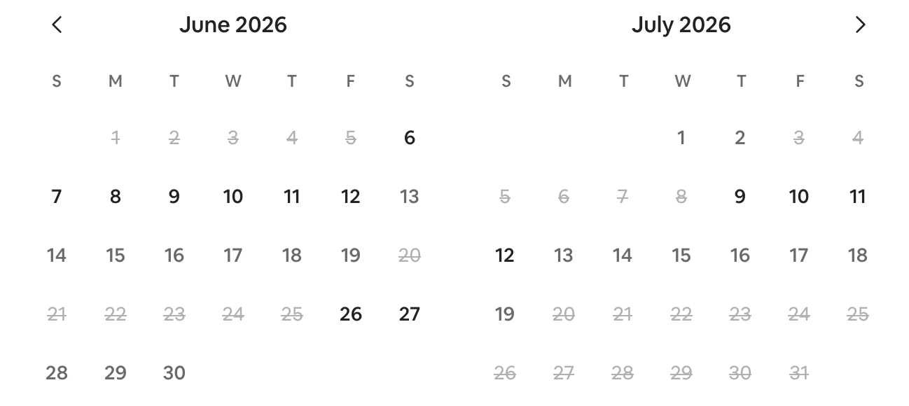 Prices shown are based on a 7 night stay. Use the arrow to move to next month.